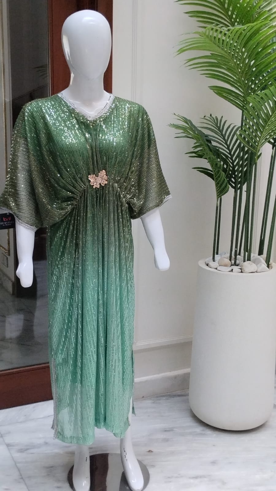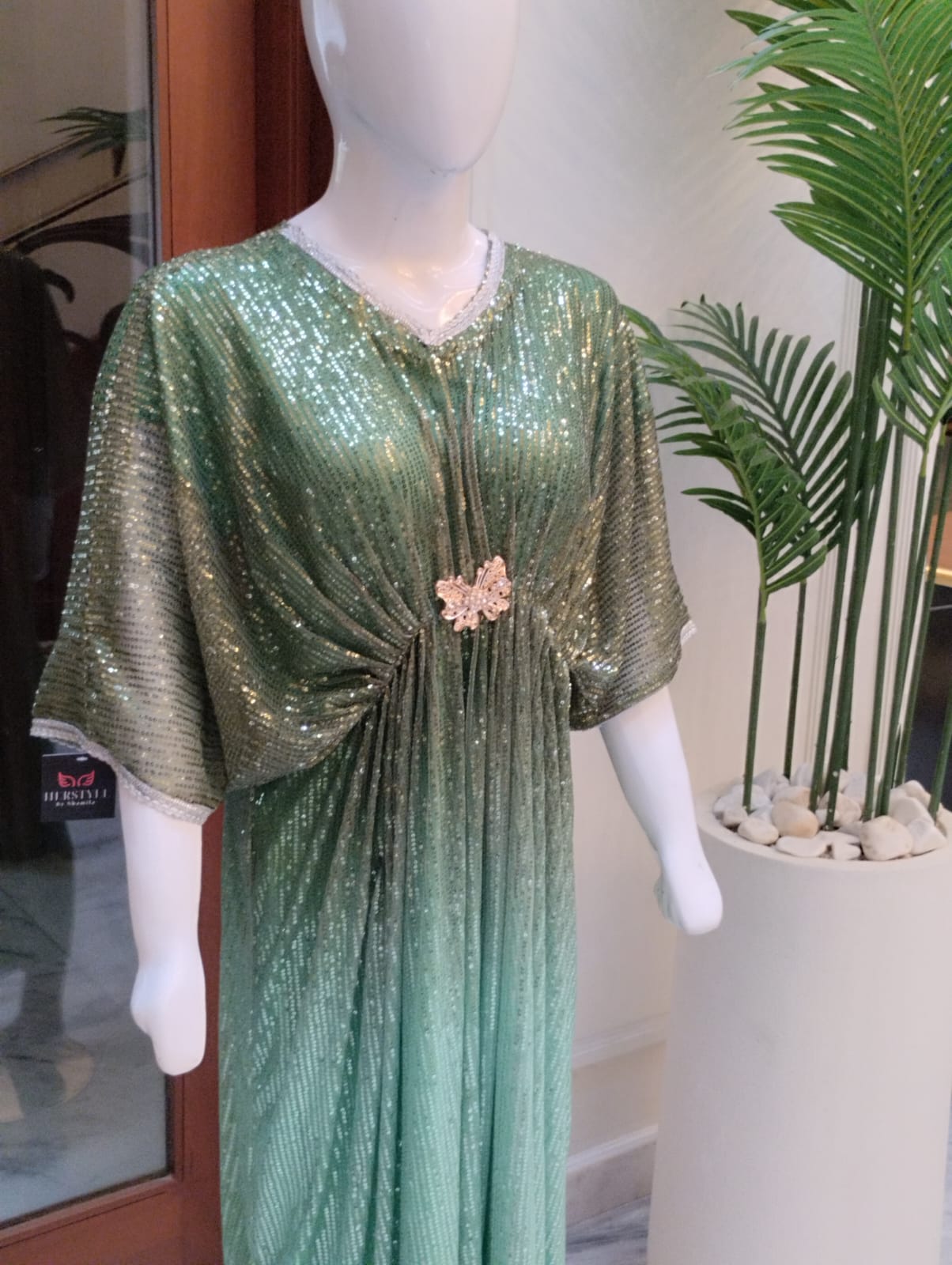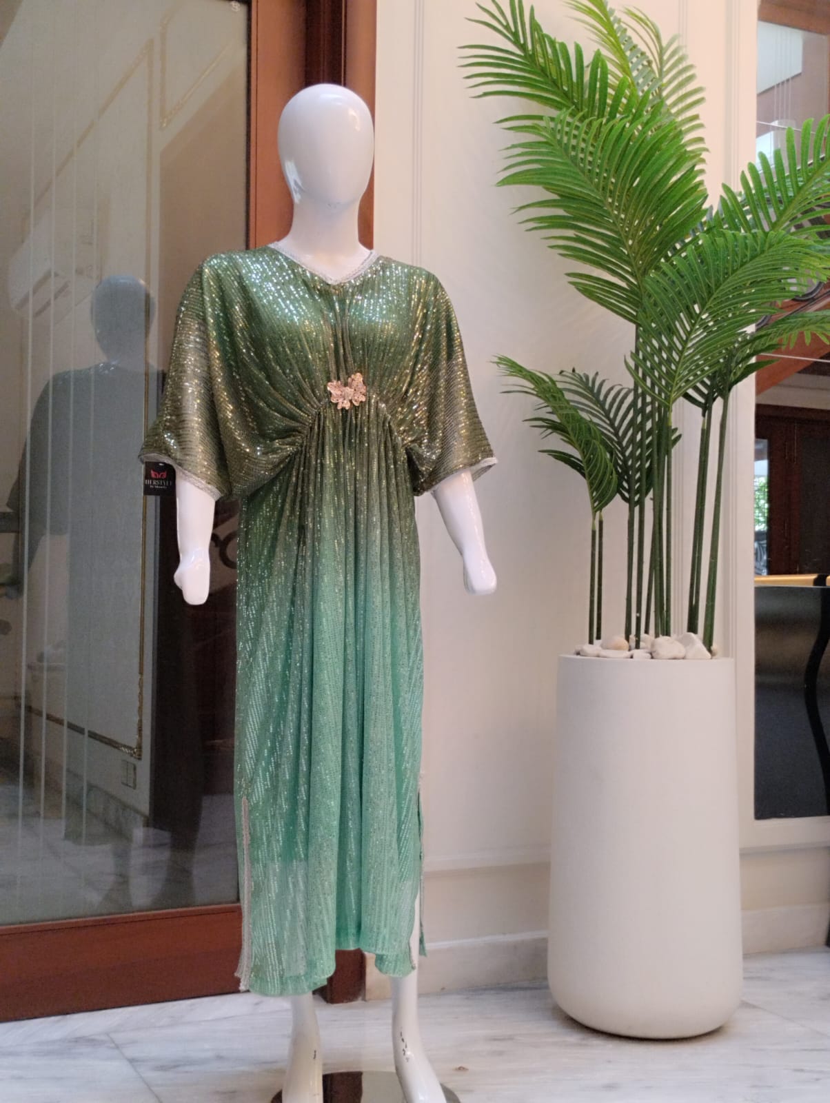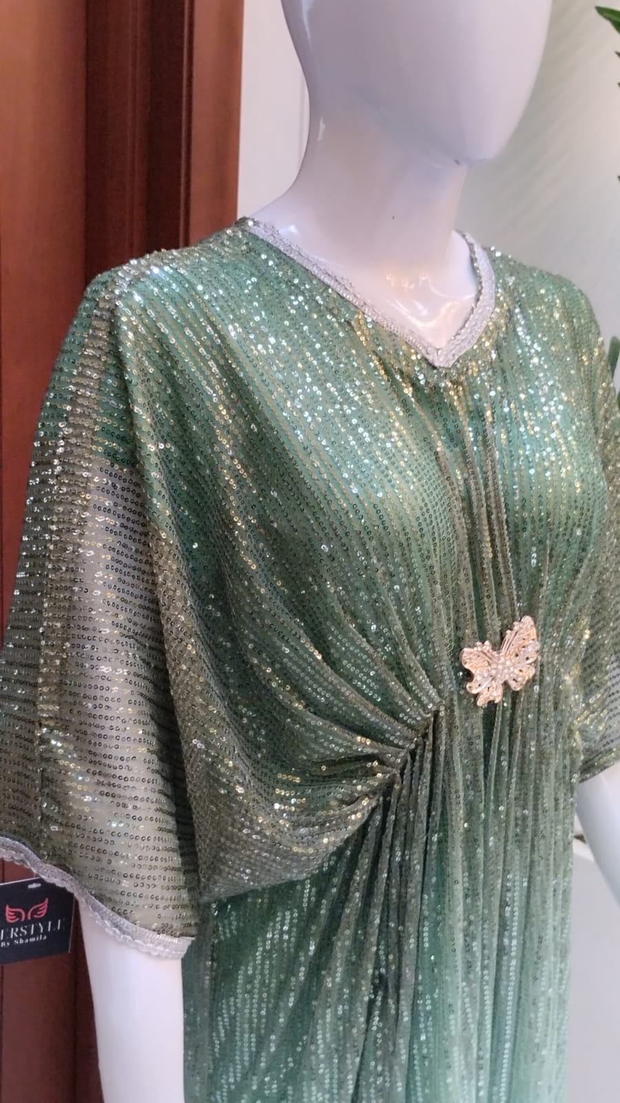 Elevate your party wardrobe with the Ruby sequence net double shade Taftaan, a sophisticated blend of texture and color designed for trendsetters. This elegant ensemble features intricate stonework and is adorned with a delicate butterfly brooch, adding a refined touch of glamour. Perfect for special occasions, it combines traditional craftsmanship with contemporary style to ensure you stand out with grace and confidence.