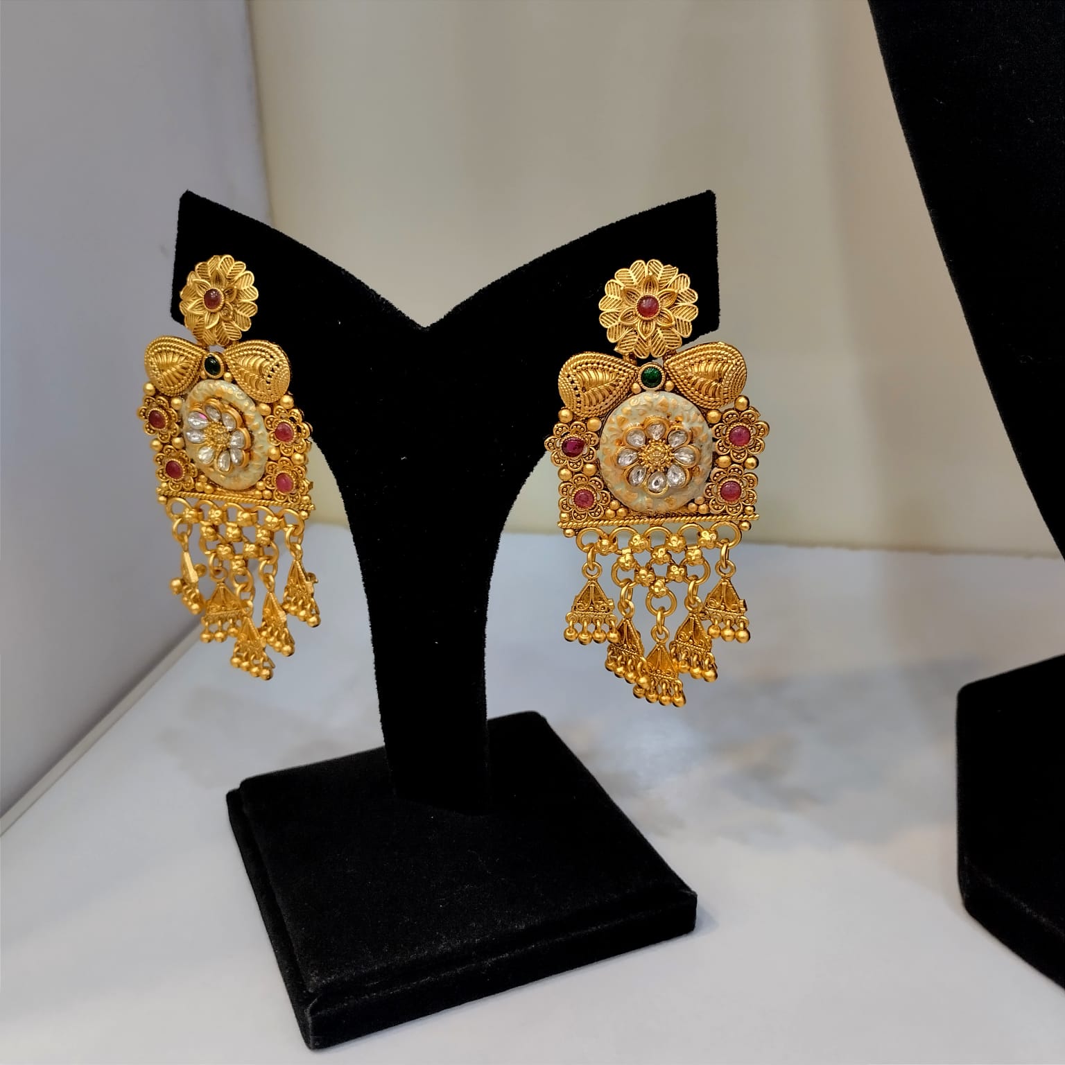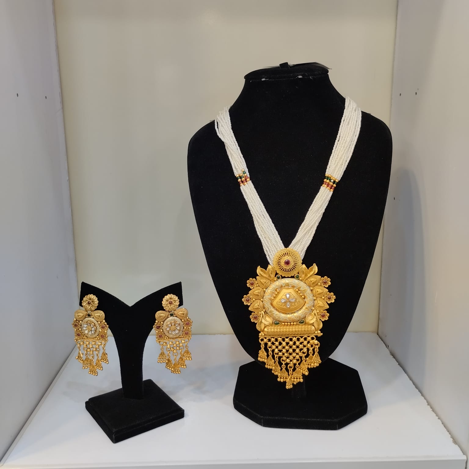 This Rani Haar set features a multi layered beads strand design is a masterpiece of royal elegance , this multi layered mala is adorned with semi precious stones & delicate pearls.